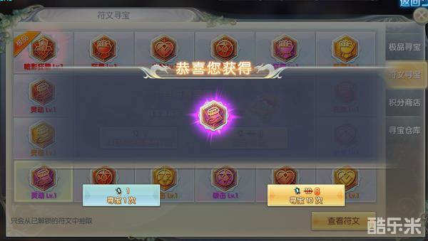 符文寻宝、符文兑换、符文精华宝箱。符文寻宝里面抽出的符文碎片可以用来符文兑换里面兑换高等级符文哦!