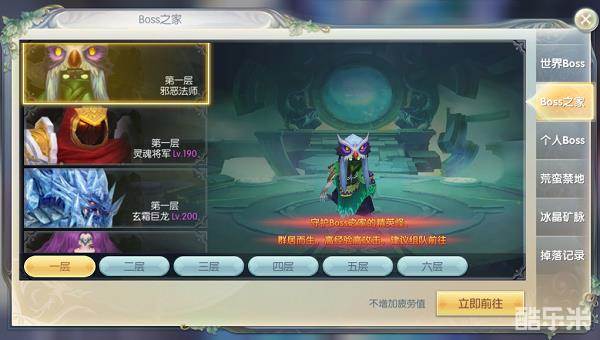 对比世界Boss和个人Boss,Boss之家在数量上那是非常具有优势的。Boss之家一共分成三层,每一层都有一大堆的Boss在等你来刷!更经常有玩家直接就入住Boss家了。