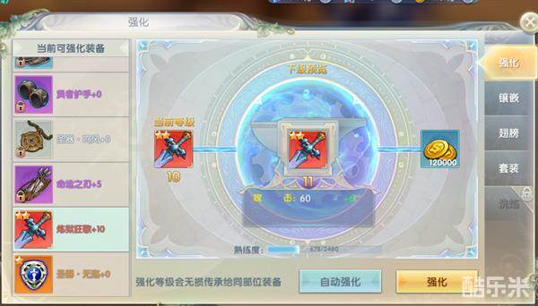 《创世神曲》中的装备强化系统是用玩家的金币来提升装备的基础属性,强化等级越高,基础属性的提升就越高。装备的品阶不同,强化等级上限也不同。