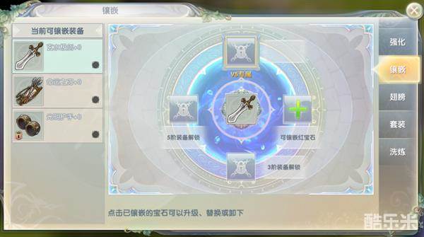 高阶的装备拥有特定的宝石镶孔,玩家可以镶嵌生命或攻击类宝石给装备,宝石可以通过商城直接购买,也可以打怪获得合成材料逐步合成高级宝石。