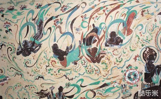 莫高窟第329窟-西壁龛顶-乘象入胎中的伎乐飞天-初唐