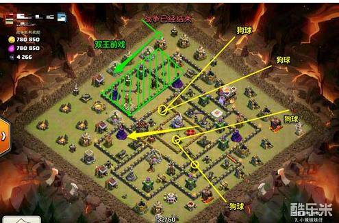 狗球路线如何优化,满九如何利用狗球路线呢?这里说的击破架鸟塔的11本非满十一,而是九本基础上的十一本。这个阵型,已经经过伙伴的探路,得知守军为狗,那么暴力狗球就是最佳三星进攻的选择,只需要将狗球的线路进行优化,就能依靠黑球的数量+极速,进行以快打慢地推进,规避鸟炮的伤害,从而攫取三星。