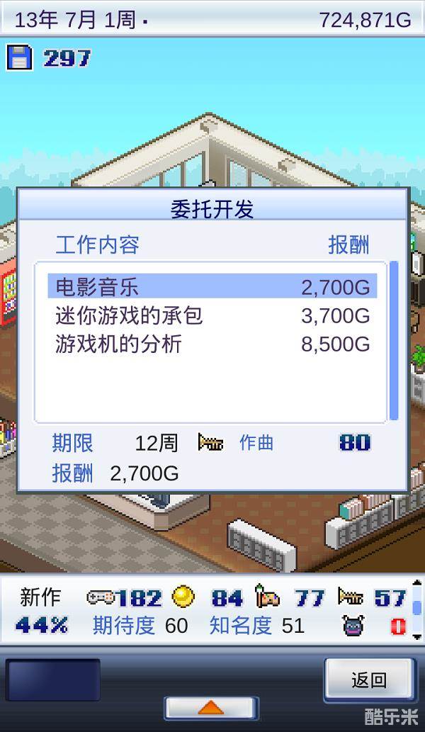 6.1.2委托开发:委托开发在用户初入游戏的时候,是最好的资金积累方式。完成委托可以获得报酬并且积累研究点数。