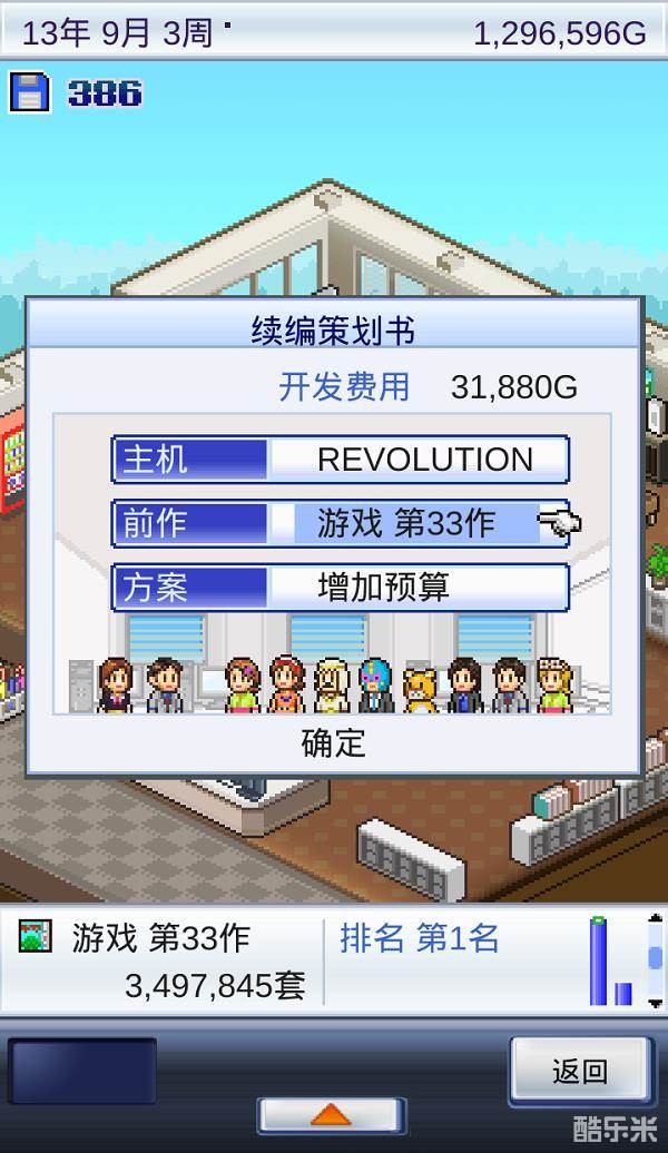 在过往作品信息中,玩家可以查询自己的游戏公司过往的所有作品以及发售量情况。点击作品名可查看作品的情况说明,包含游戏名,游戏组合,杂志评级,制作费用,销售额,发售时间,入围排名等信息。