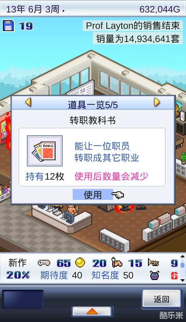 在《游戏开发物语》中每年的5月会有南瓜商人到公司兜售道具,此时我们可以准备好充足的资金来购买这些道具。这些道具有各种不同的效果,比如画面技术可以提高画质,转职教科书可以让1位职员转职等等。