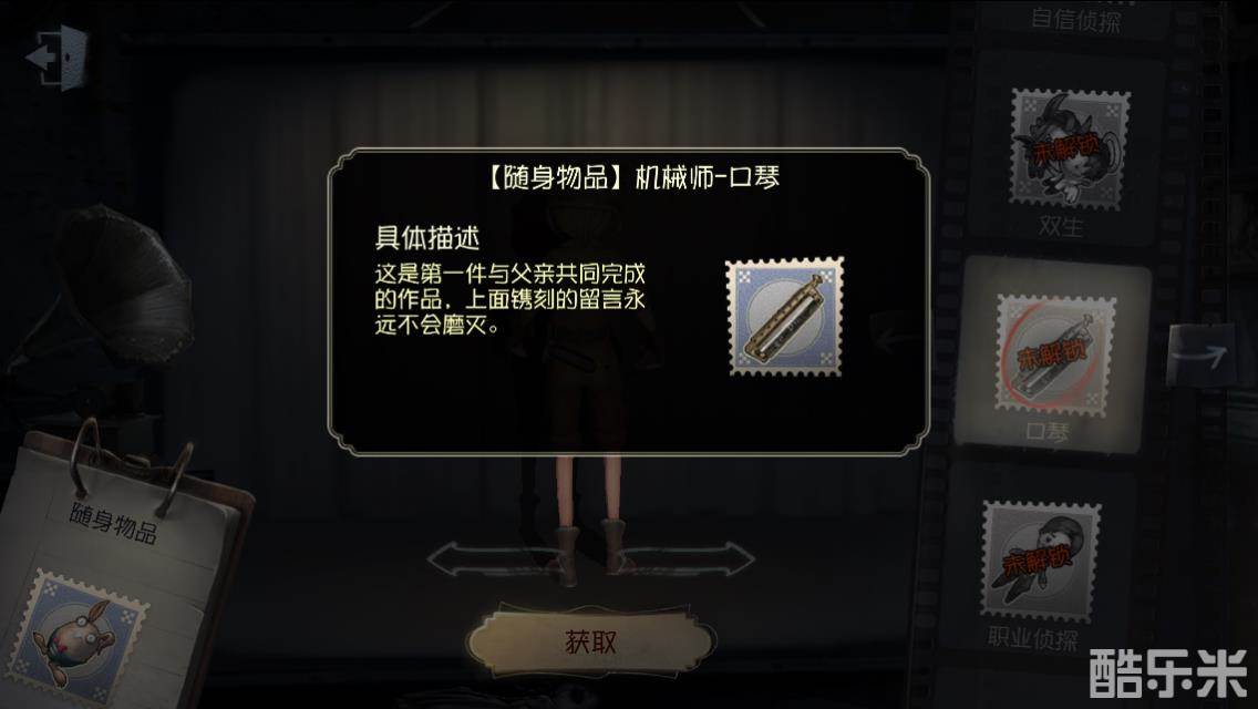 《第五人格》中除了时装可以给人物加色之外,还有随身物品可以给角色当挂件,虽然也不加成属性,但非常好看,这里带来是随身物品——口琴,希望可以帮助到大家。