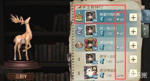 监管者的排行星级咬得也比较紧,榜首屠夫的星星是85颗!比人榜第一抱抱熊的星级高了整整22星!22星差的可是440分,大约80-100局胜利。