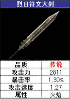 Raven掠夺者盘古传说烈日符文大剑介绍,二千多的攻击力还是不错的,但是相对于他的大哥来说真的是九牛一毛,那么我们在使用时候只能从其他方面进行考究,下面让我们先来看看其中的属性吧。