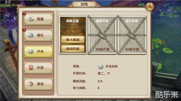 关于开光材料的来源问题,首先目前阶段能够参与战场、心魔、剧情扫荡等玩法的玩家较多,去玩家手中收材料是个不错的选择。江湖试炼是开光材料主题的时候参加一下为好,毕竟每周周二和周六参与活动能收获不少材料