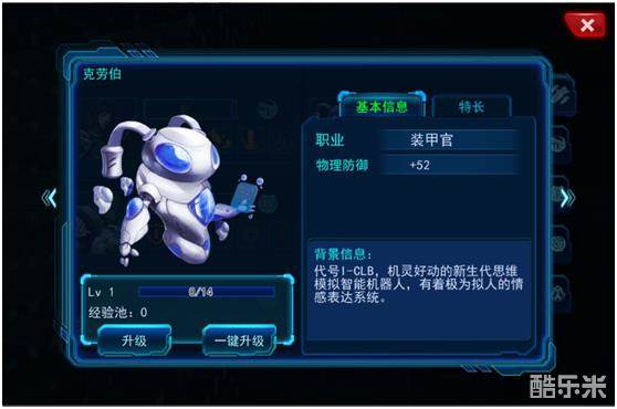 【克劳伯】代号I-CLB,机灵好动的新生代思维模拟智能机器人,有着极为拟人的情感表达系统
