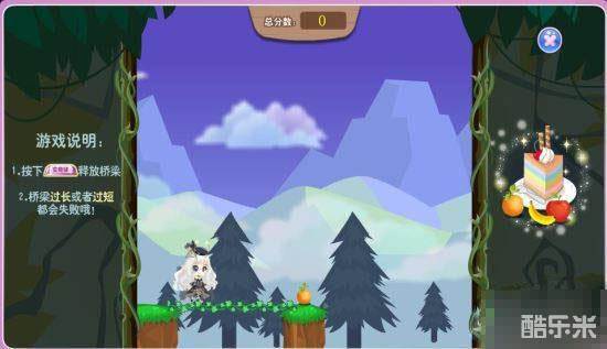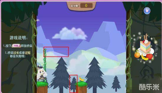 这个游戏里的树和云都是参照物啊!近的话自己估算一下就行了,远的话:比如木桩在第二棵小树那里的时候,就等藤蔓超过第一棵树一点又不到云的地方按下空格键;木桩在第三棵树那里的时候,就等藤蔓到云朵那里按下空格键。