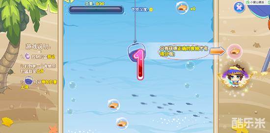 注意哦,红色圈圈圈住的是主要的东西。如旁边的游戏说明,你要控制钓篮左右,因为我一开始没有好好看规则才落了个惨剧。