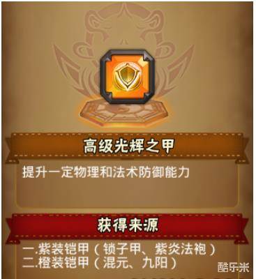 高级光辉之甲,高级装备特效,可以提升大量防御能力,那么高级光辉之甲特性属性是什么呢,高级光辉之甲获得来源有哪些呢,下面和小编一起来了解一下吧。