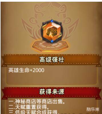 高级强壮,高级天赋,可以增加英雄生命,那么高级强壮天赋属性是什么呢,高级强壮天赋获得方法有哪些呢,下面和小编一起来了解一下吧。