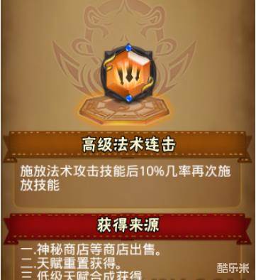 高级法术连击,高级天赋,有几率再次施放法术技能,那么高级法术连击天赋属性是什么呢,高级法术连击天赋获得方法有哪些呢,下面和小编一起来了解一下吧。