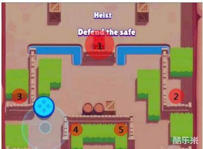 1、酒保在2点或者3点一直蹭能量,酒保覆盖范围很大,基本每个点能罩住地图的一半,但是不能普通攻击是无法攻击到宝箱的。如果是满级酒保,蹭能量快的话,两个队友在另外一侧给压力,逼迫他们靠近酒保所在半边,这样伤害也是够打掉宝箱的,而且很容易把对手打成挂机状态(催迫对手心理防线)!