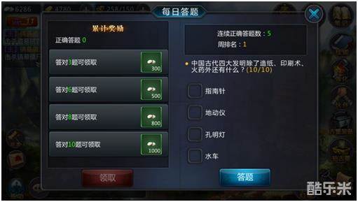 每天可以答10题,每答对一题都可以获得奖励哦,当天累计答对一定的题数还可以额外获得奖励哦。