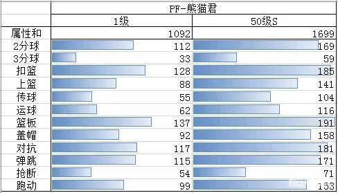 熊猫君的篮板、对抗皆为主流PF水准,受橙色天赋加成后,弹跳能力极为优秀,再加上主题球员鼓舞同样强化盖帽,故熊猫君的篮板能力和盖帽能力不容小觑。