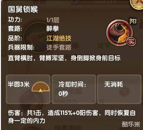 国舅锁喉 实招 |范围 半圆3米|冷却时间 0秒 |消耗 无