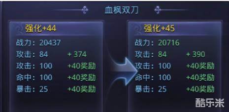 2、强化成功即可增加对应该装备的对应属性,强化每增加10级,即可额外获得奖励属性。