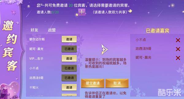预约宴席后,可邀请好友参加宴席,被邀约的好友会收到宴席请帖,宴席在预约的时间开启后即可进入场地参加宴席!