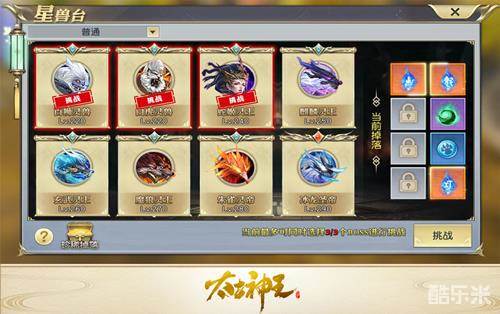 星兽台分为普通、困难、史诗三个难度,其中困难和史诗需要玩家满足相应条件后才会解锁,当然通关后获得的奖励也会更多。在选定难度后,玩家还要从8个圣灵中挑选1-3个作为本次的试炼BOSS,然后就可以正式开始战斗了。通关星兽台不仅可以获得培养圣灵的相应材料,还有机会获得坐骑丹奖励,修炼的同时还能解锁更多坐骑炫酷造型哦!