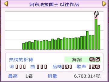歌声、音准、舞蹈、魅力这几项对销量有一定的影响,但也有一定的上限,哪怕你全999的属性,不见得比一个200属性的人销量高。四种主属性对销量的影响有一定的上限,大概400左右就是极限了。唱片公司方面,最后一家开罗唱片对属性的要求也就是400左右的平均属性(另外有奖杯数量要求),所以400多的平均属性,就差不多可以了。(当然,有其他需求的玩家可以继续想办法提升)