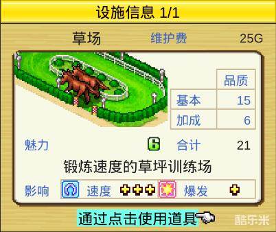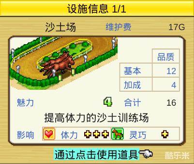 这些设施中,训练效果比较高的是草场、沙土场和游泳池。这三个设施可以提升赛马比较重要的速度、体力属性。而且提升的效果也是比较出色的,所以推荐使用!
