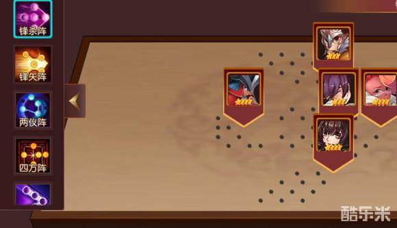 阵法中总共有7种阵法,锋杀阵、锋矢阵、两仪阵、四方阵、锥形阵、雁形阵、八卦阵,阵法解锁是随着主公等级解锁,等级越高解锁的阵法就越多。