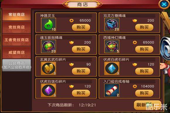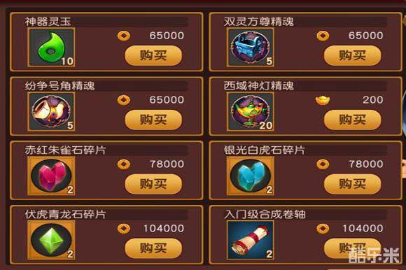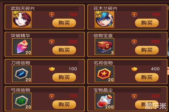 一般有常住商店,可购买神器使用材料,武将进阶材料以及入门级合成卷轴。