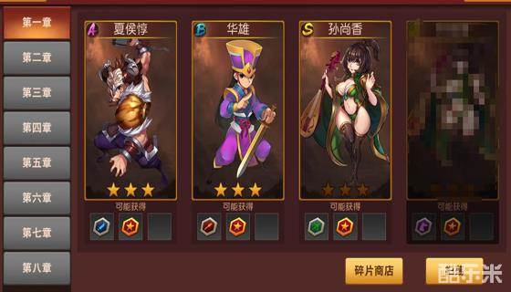 斗将台共分为八章,每章都有有四位不同类型的武将,战胜后会产出对应的武将信物
