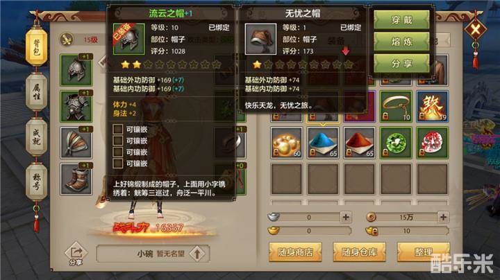 在游戏的初期,装备的主要来源是少侠在做主线任务时随机获得的。而这样的装备属性都很低。与此相比,充值就是一个很好的途径,因为充值获得的赠送的豪侠套装就要好很多。并且凑齐四件套还有额外的10点一级属性和4055血上限的属性加成,这就让30级以前的升级变得异常流畅。