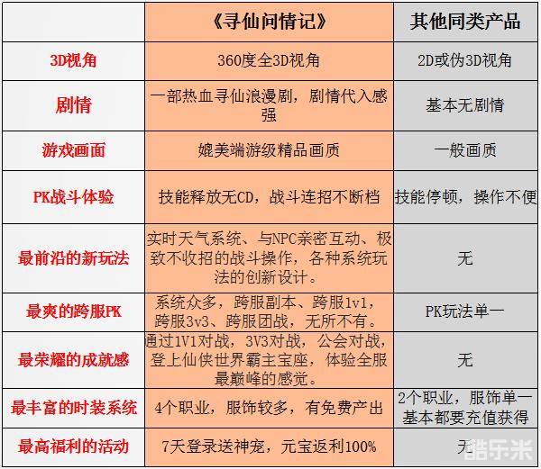 小编提前拿到了游戏内测包,体验了3天时间,这不第一时间就为大家带来最新的游戏评测情况。首先先来大概了解下《寻仙问情记》与同类类似主流产品的比较: