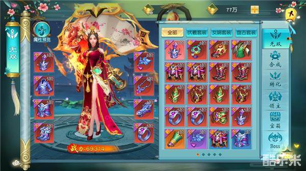 由于套装不同,不同阶数的相同套装属性也不同,且每个系列套装都有8件装备,而无论是领主BOSS还是宝箱抽奖,获取的无双装备都是随机的,这就为玩家收集对应套装带来了不确定因素,此时【合成】与【转化】系统恰好为玩家解决了此类烦恼。