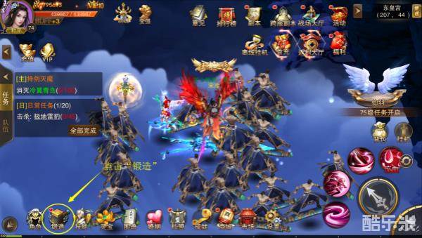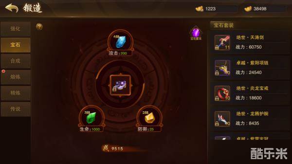 获得宝石后,打开游戏界面左下角菜单,点击“锻造-宝石”即可进入镶嵌宝石界面。