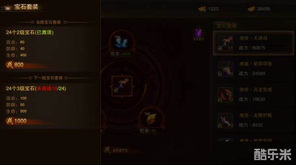 镶嵌一定数量符合条件的的宝石可以激活宝石套装,增加更多的战力。每个宝石的最高等级为10级。