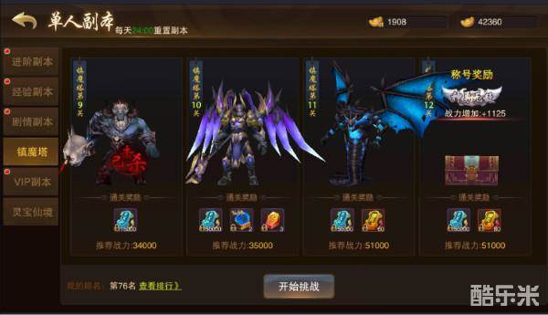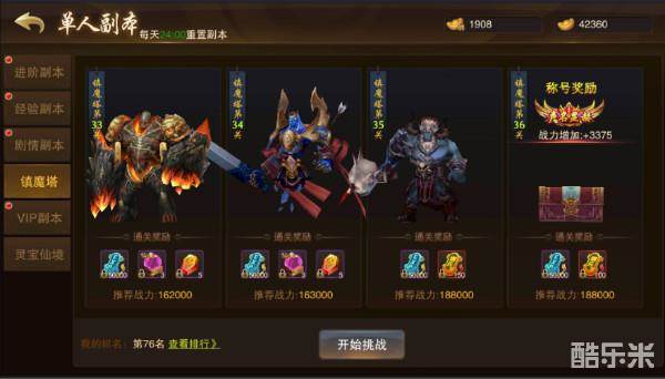 镇魔塔是一个指定时间内单挑BOSS的爬塔副本。