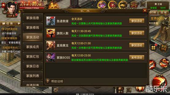 家族BOSS:族长发布活动,联合家族成员击败BOSS获得经验和家族贡献奖励
