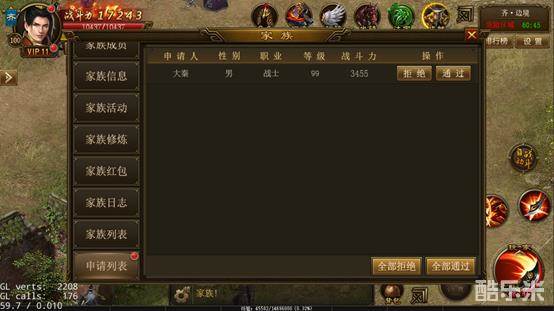 族长、副族长、长老可在申请列表内审核操作加入家族请求