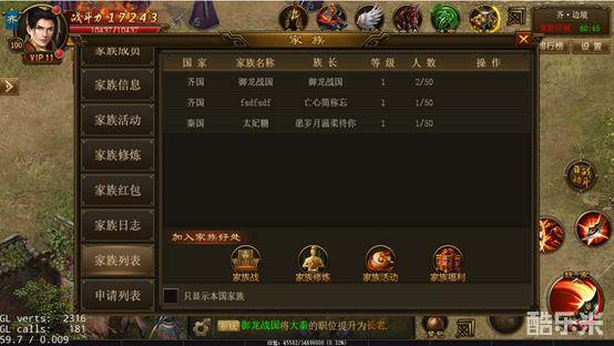 家族是《情剑风云》中玩家创建的团体组织,没有家族如何国战,加入一个实力强大的家族,结交一帮同生共死的兄弟,统一三国称霸全服!