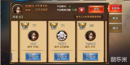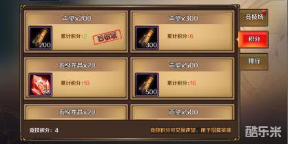 挑战胜利后可以获得2积分,挑战失败后只能获1积分,竞技积分每天都会清零,所以请各位小伙伴每天及时领取积分奖励。