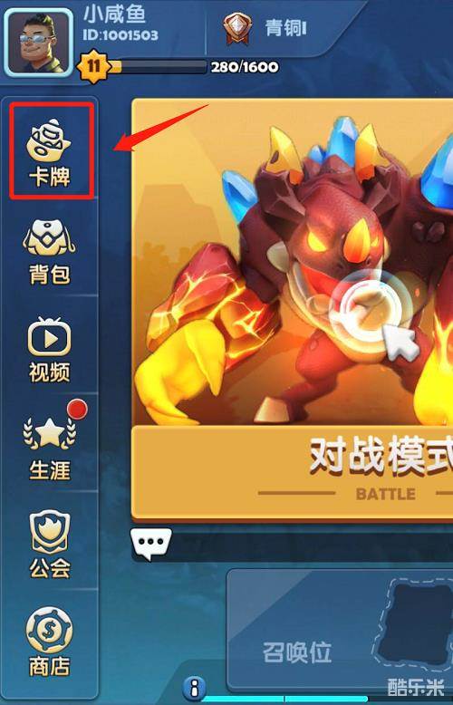 我们可以在游戏主界面点击右侧的“卡牌”来查看自己的英雄和兵种的情况。