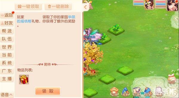 当玩家自己摇树的次数满了之后还可以将信息发布到世界或是帮派频道,其他玩家前来摇树,树的主人也能获得回馈哦。