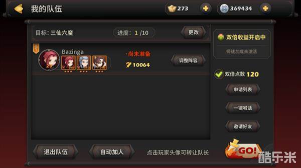 开启条件:三人组队开启。注意一定要点双倍点数,开启双倍收益。(双倍点数每周六更新180点,每次三仙六魔任务消耗2点。)