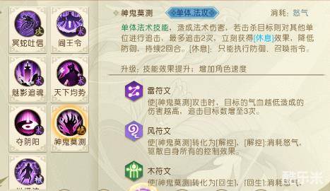 更新后的鬼谷如果【神鬼莫测】选则雷符文将追击次数增加至4次,再加上雷符文本身“目标气血越低伤害越高”的效果,如果选择在敌方团队血崩的时候释放,比如配合星玄更新后的【星罗万象】(群攻且清除敌方所有增益BUFF),很容易达到收割效果,原本的单点击杀也间接变成了群攻。设想在5v5pk中一个技能连杀五人的壮丽场景,一定是每个鬼谷玩家的梦想。
