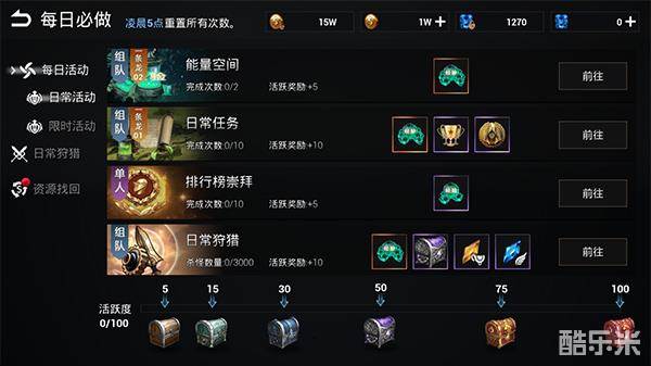 游戏中还有一些每日必做的日常任务、限时活动,如果时间允许尽量全部完成,资源、装备、等级都是一点一点积累的,如果确实觉得时间紧任务重,即便没有完成,次日大家可以试试资源找回,当然需要支付金币获得钻石才行,可以找回昨日未完成任务或副本的部分所得经验,操作时请看好“一键找回”和“完美找回”的区别,消耗金币找50%资源,消耗钻石找回100%资源。
