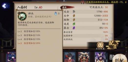 阴阳师新SR人面树技能介绍 看一看防御变输出