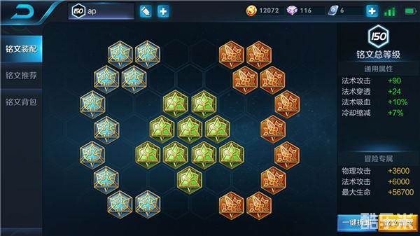 铭文方面红色梦魇、蓝色轮回、绿色献祭,铭文的总属性为法术攻击+90、法术吸血+10%、法术穿透+24、冷却缩减+7%。法术攻击、法术穿透让小乔的技能伤害更高,法术吸血配合噬神之书让续航能力更加出色,减少了回城的次数,加快了发育。冷却缩减加快了技能的冷却CD,输出能力进一步提高。