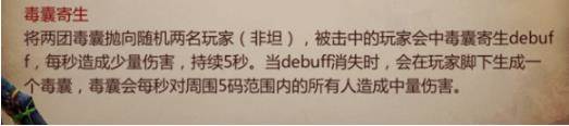 注意:毒囊会持续刷出3个当三个毒囊刷新后快速回到大团,中debuff玩家一定不能把毒囊放在队友脚下,玩家站在毒囊内会持续掉血每秒大概5000左右浮动(根据自己属性而定)