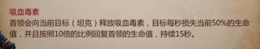 在BOSS释放这个技能后中吸血毒素的T会有一个15秒的debuff,团队这个时候奶粉的分配就很重要了二个奶看好当前接住BOSS的T的血量分配一个奶妈看好中debuffT的血量且控制好血量不要太高。